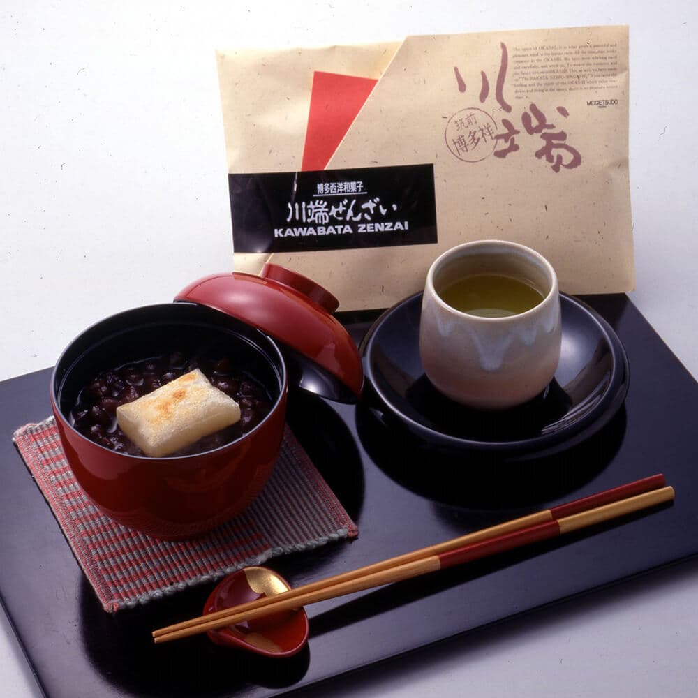 博多っ子に愛され続けてきたこのまぼろしのぜんざいの味を現代においしく蘇らせたのが、明月堂の博多西洋和菓子“川端ぜんざい”です。